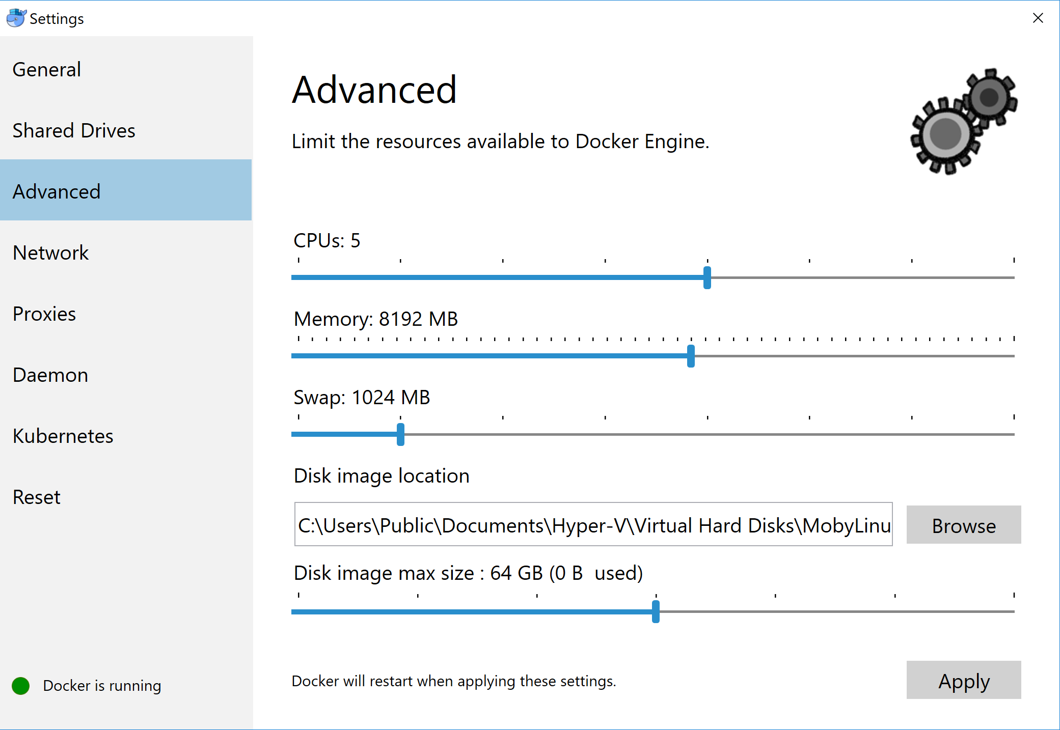 Going to the advanced tab, and you can edit the maximum memory used by docker.