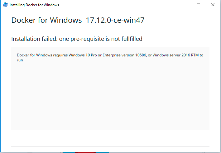 Windows Docker Desktop requires Windows 10 Pro or Enterprise version 1586/2016 RTM or above